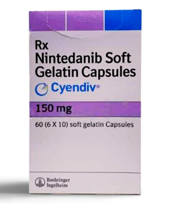 - De gebruikelijke dosering van nintedanib is 150 mg, twee keer per dag.